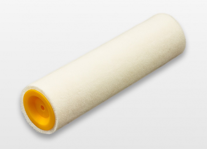 Велюровый валик ,,Велюр” предназначен для покраски гладких поверхностей. Обеспечивает высокоглянцевое покрытие и гладкий финишный слой без образования пузырьков. Малярный валик этого типа используется в основном для работы с алкидными красками и лаками, полиуретановыми однокомпонентными и двухкомпонентными красками и лаками, эпоксидными красками, смолами и др. Он высокостойкий по отношению к агрессивным растворителям. Для профессионального употребления. ,,Велур” выработан из высококачественного 100 % шерстяного покрытия. Для него характерна большая густота волокон, которые термически закреплены к основе. Их длина 4 мм, а концы взъерошены в последней 1/3 своей длины.